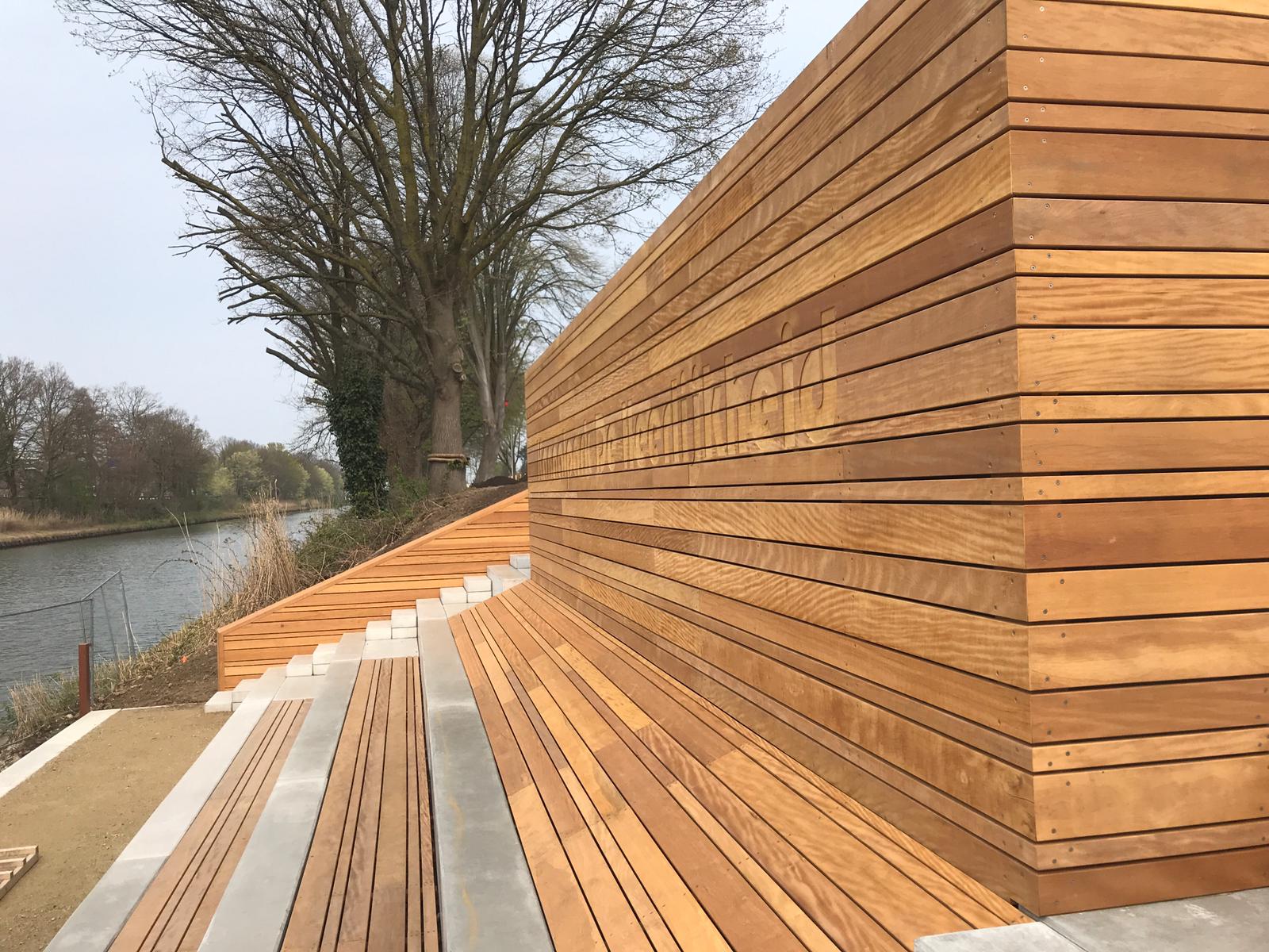 Omschrijving: In Nederweert is het park Kanaalpark De Heerlijkheid Budschop compleet vernieuwd. Hoogtepunt is het uitzichtpunt over het water. In samenwerking met Flora Nova heeft Boogaerdt Hout het Bilinga geleverd voor dit mooie project. Het Bilinga is met een FSC® 100% certificaat en is geschaafd volgens profiel.