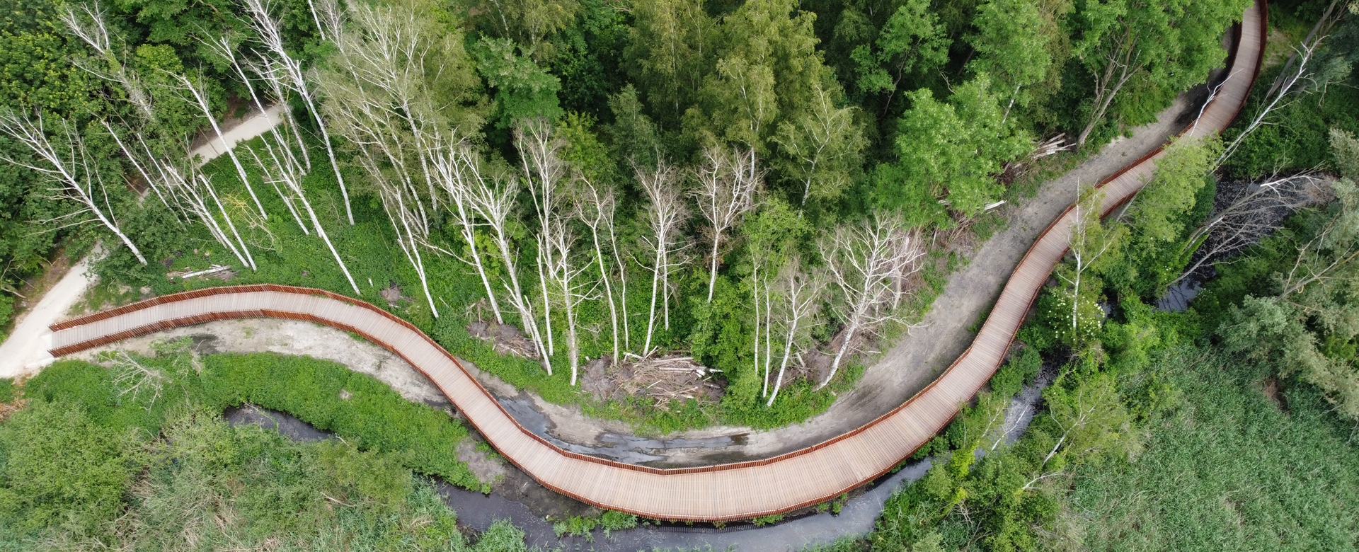 Omschrijving: In de gemeente Beekdaelen is het gebied rondom Schinnen, Thull en de Muldersplas met als centrale spil de Alfa Brouwerij herontwikkeld. Onderdeel van deze herontwikkeling zijn de twee glooiende wandelvlonders nabij Riet- en Biezenveld en het Orchideeën observatorium.