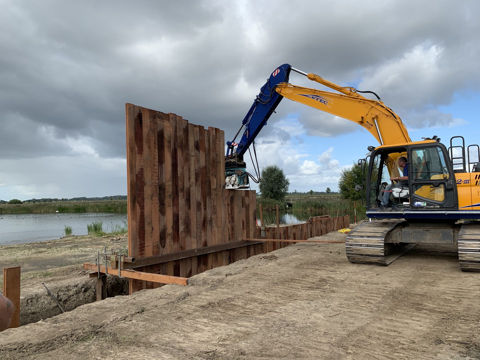 Omschrijving: Bij Vinexwijk Nesselande is een damwand geplaatst van 100mm dik. De gemeente Rotterdam heeft door middel van een directielevering zelf het hout ter beschikking gesteld. De uitdaging bij dit project was de eenzijdige specificatie: alles diende in lengte van 6000mm en 100mm dik geleverd te worden. Door goede afstemming tussen alle partijen is het hout tijdig geleverd.